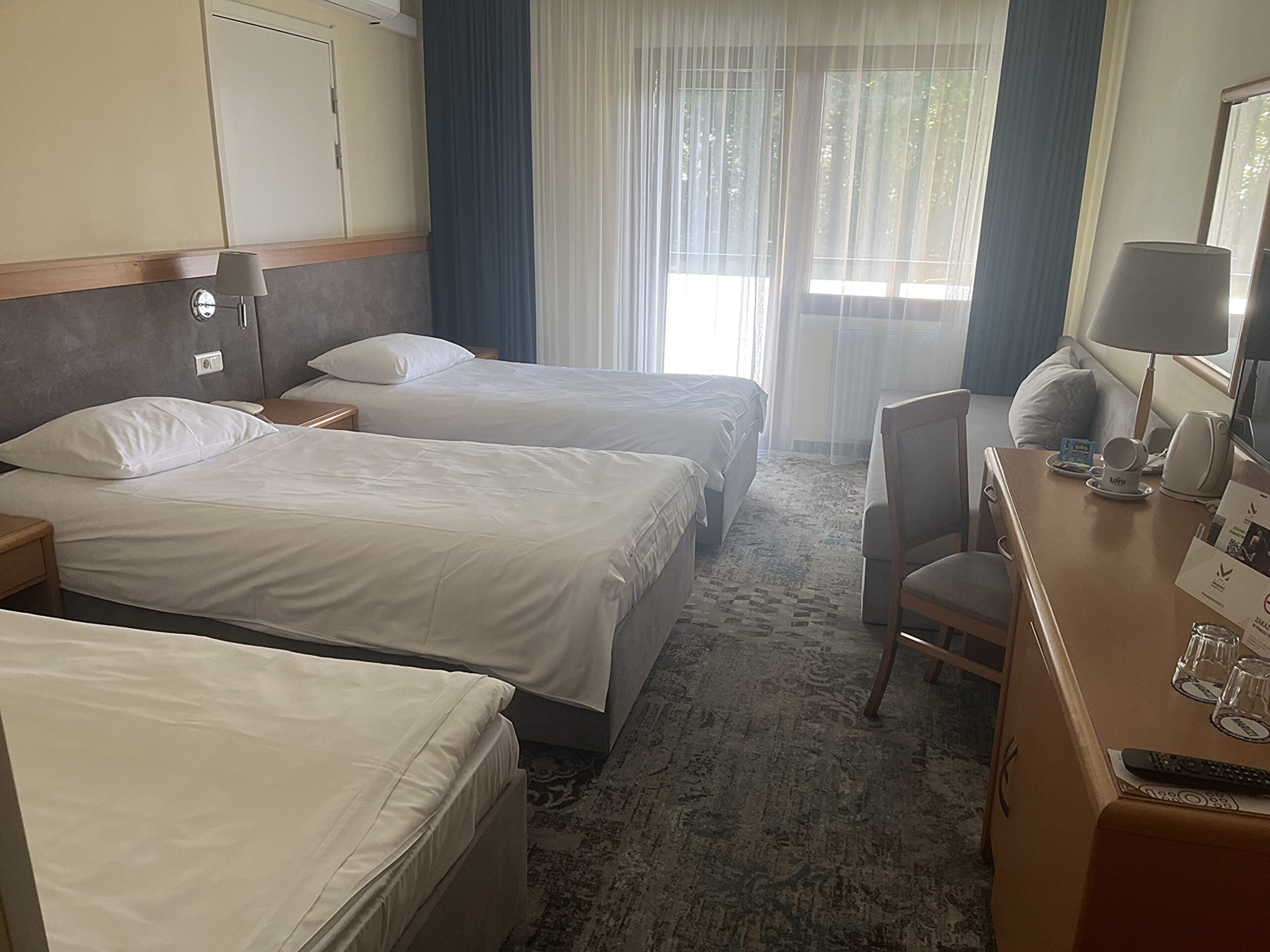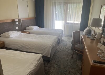 Do dyspozycji uczestników obozu są pokoje 4 osobowe z łazienkami, wyposażone w tv, bezprzewodowy dostęp do Internetu, klimatyzację, balkon. Codziennie serwowane będą trzy posiłki dziennie oraz podwieczorek w formie bufetu szwedzkiego.